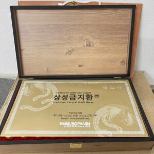 An cung hộp gỗ Samsung 60 viên SamSung Gum Jee Hwan – hay có tên gọi khác là cấm địa hoàng (명품 공본환골드 ) là sản phẩm nổi tiếng của công ty dược chuyên bào chế thuốc cổ truyền Kyeongju Herb Co.,ltd- Hàn Quốc.
