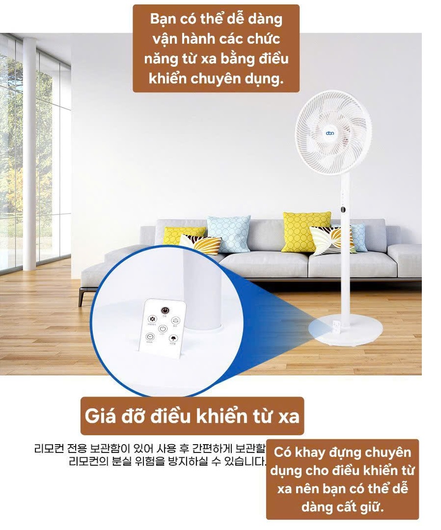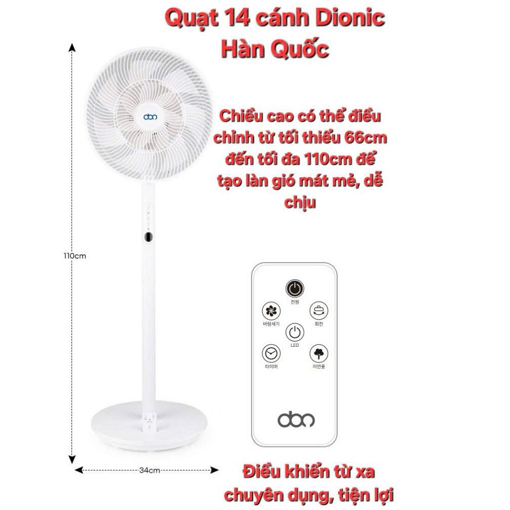 Quạt điều hòa Hàn Quốc DIONIC Electric cực kỳ tiết kiệm điện Với động cơ tiêu thụ chỉ 45W kết hợp cùng cánh quạt khí động học 14 cánh được thử nghiệm và tối ưu giúp tạo ra