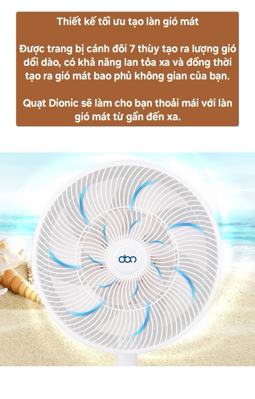 Quạt điều hòa Dionic Hàn Quốc có động cơ tiếng ồn thấp, tối ưu tiêu thụ điện, phù hợp với gia đình có người lớn tuổi và trẻ em.