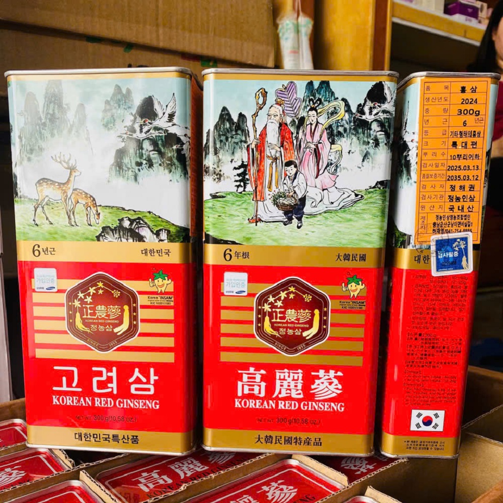 Sâm Khô nguyên củ hộp thiếc Hàn Quốc 300 gram mẫu mới 2026